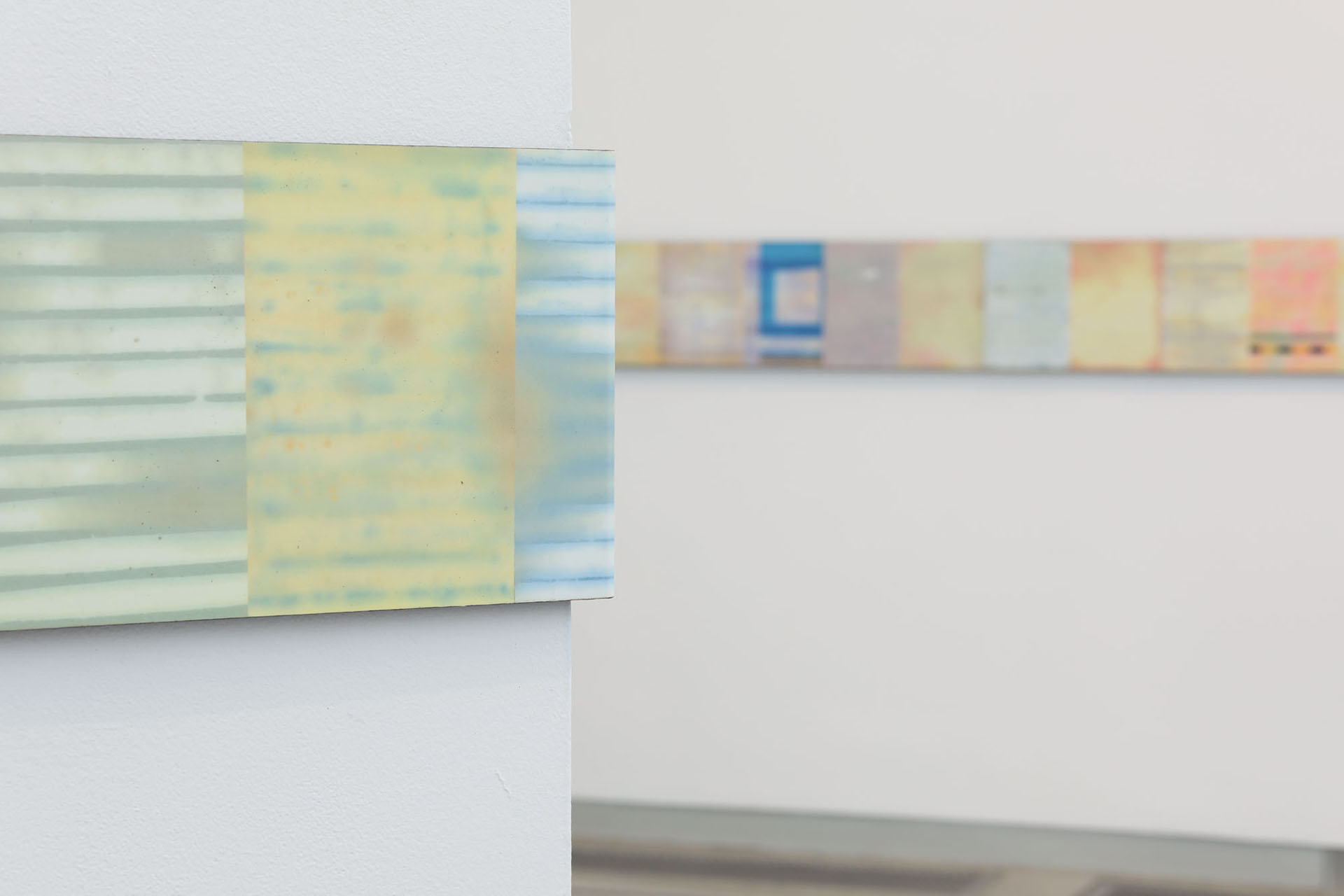 digital prints of mixed papers with candle sweat mounted on black PVC, gypsum cement, candles, wall
