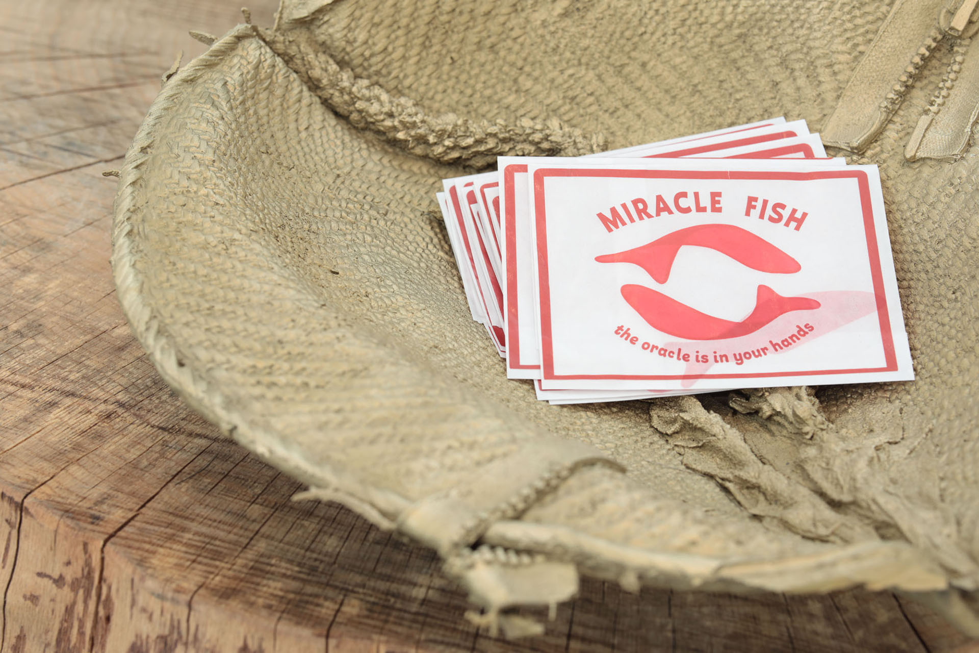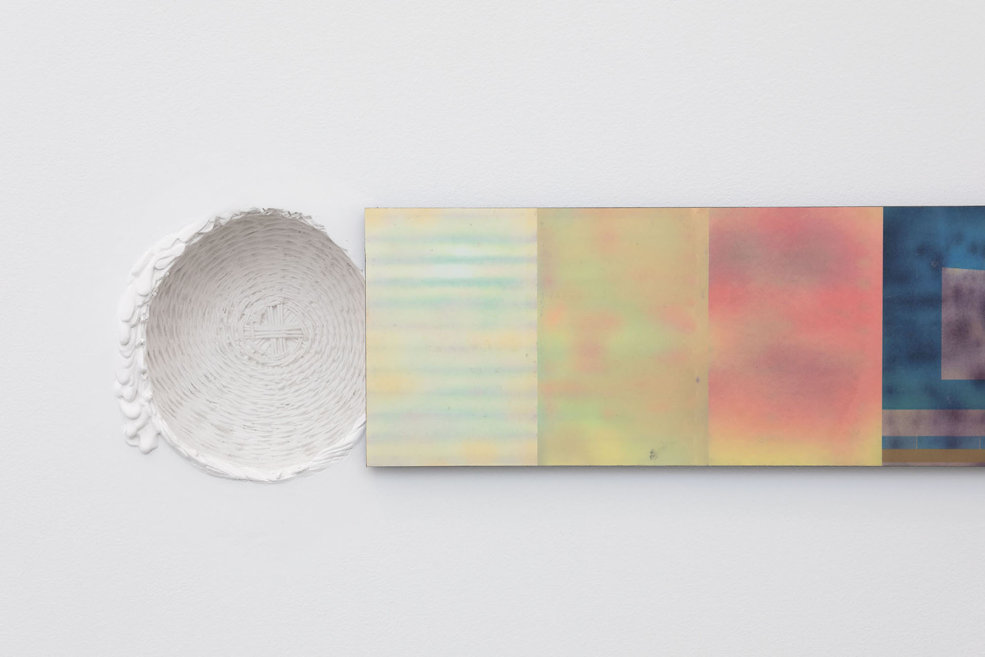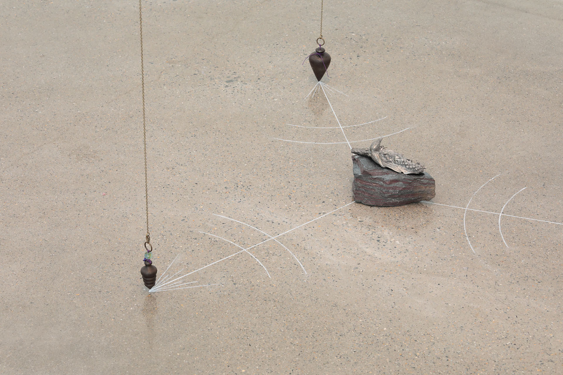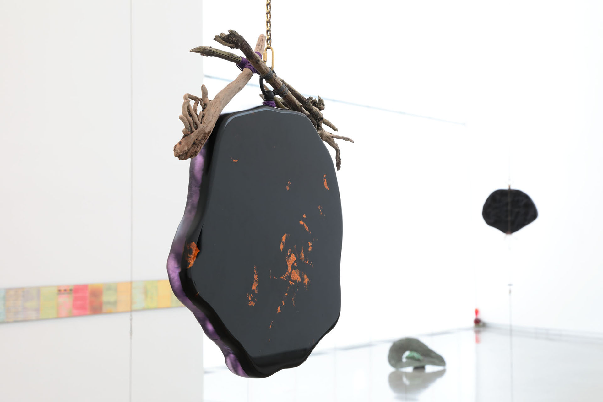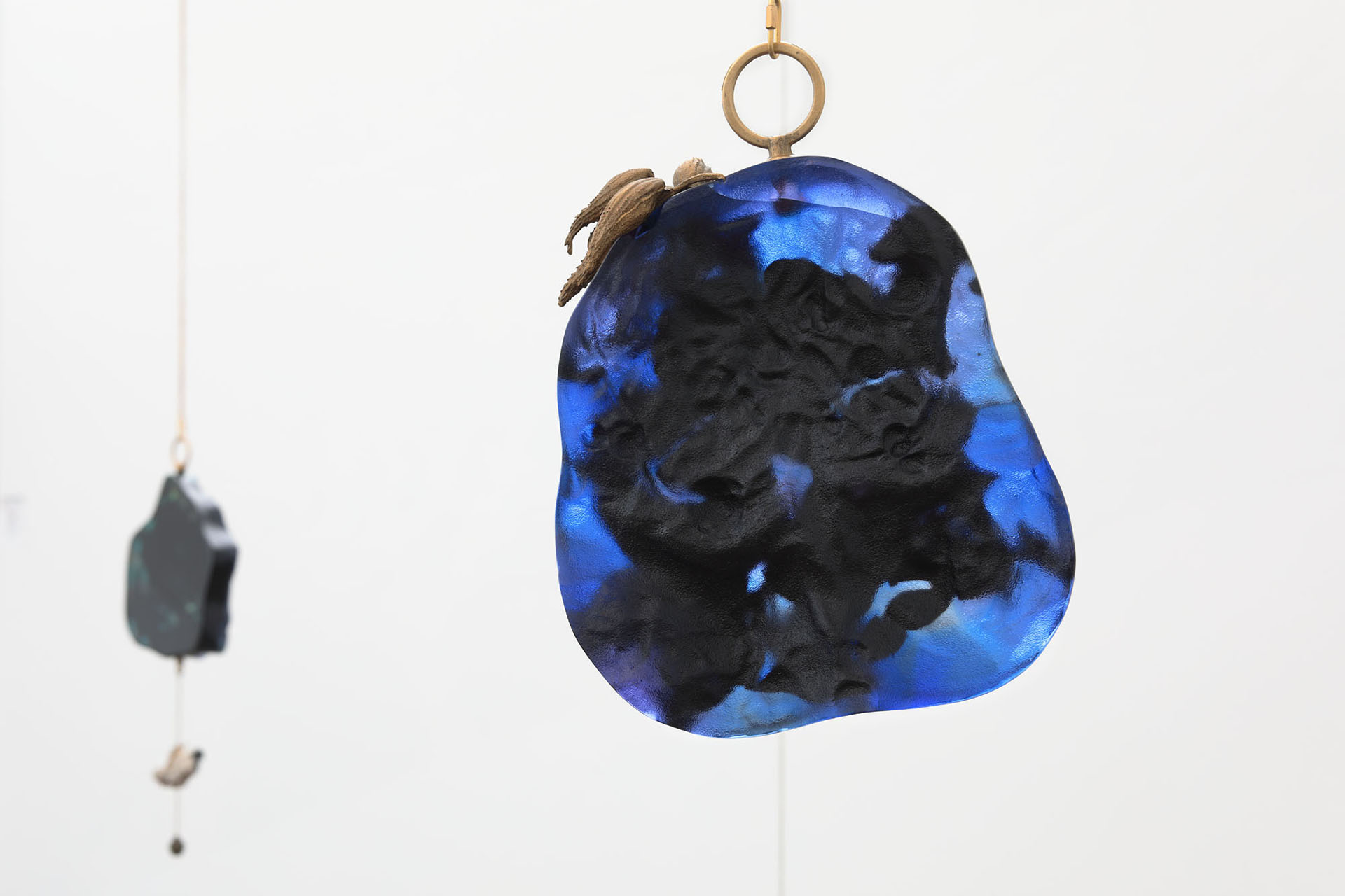 Lily Cox-Richard’s exhibition Disquiet in the Sand centers on a constellation of multicolored scrying mirrors, inspired by the ancient practice of gazing into a darkly reflective surface to unlock insight. Along the gallery walls, faint flapping forms recall the “miracle fish,” a fortune-telling novelty made of red cellophane. Implicit in these objects of divination is an invitation—to witches, mediums, and any co-conspirators—to participate collectively in the scrying process by looking deeply into these glass portals and listening for messages that emerge.