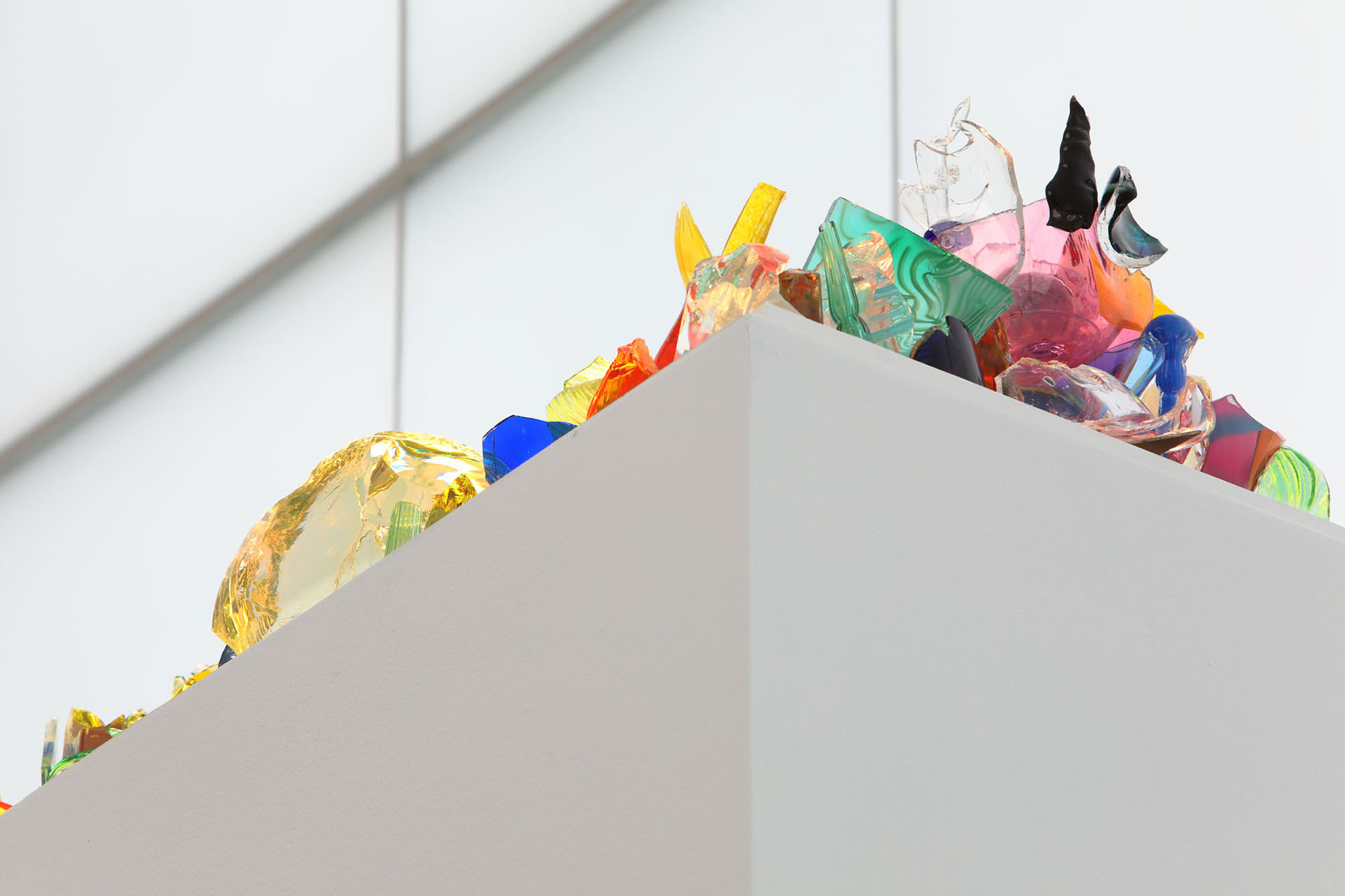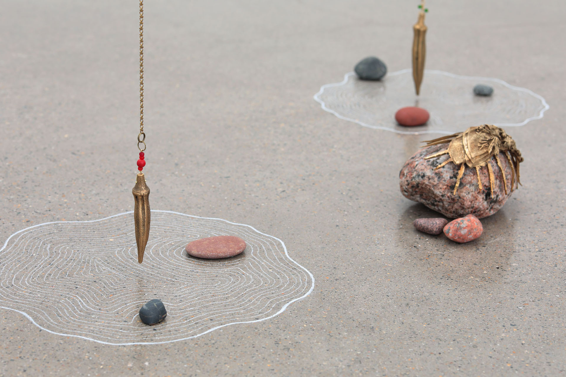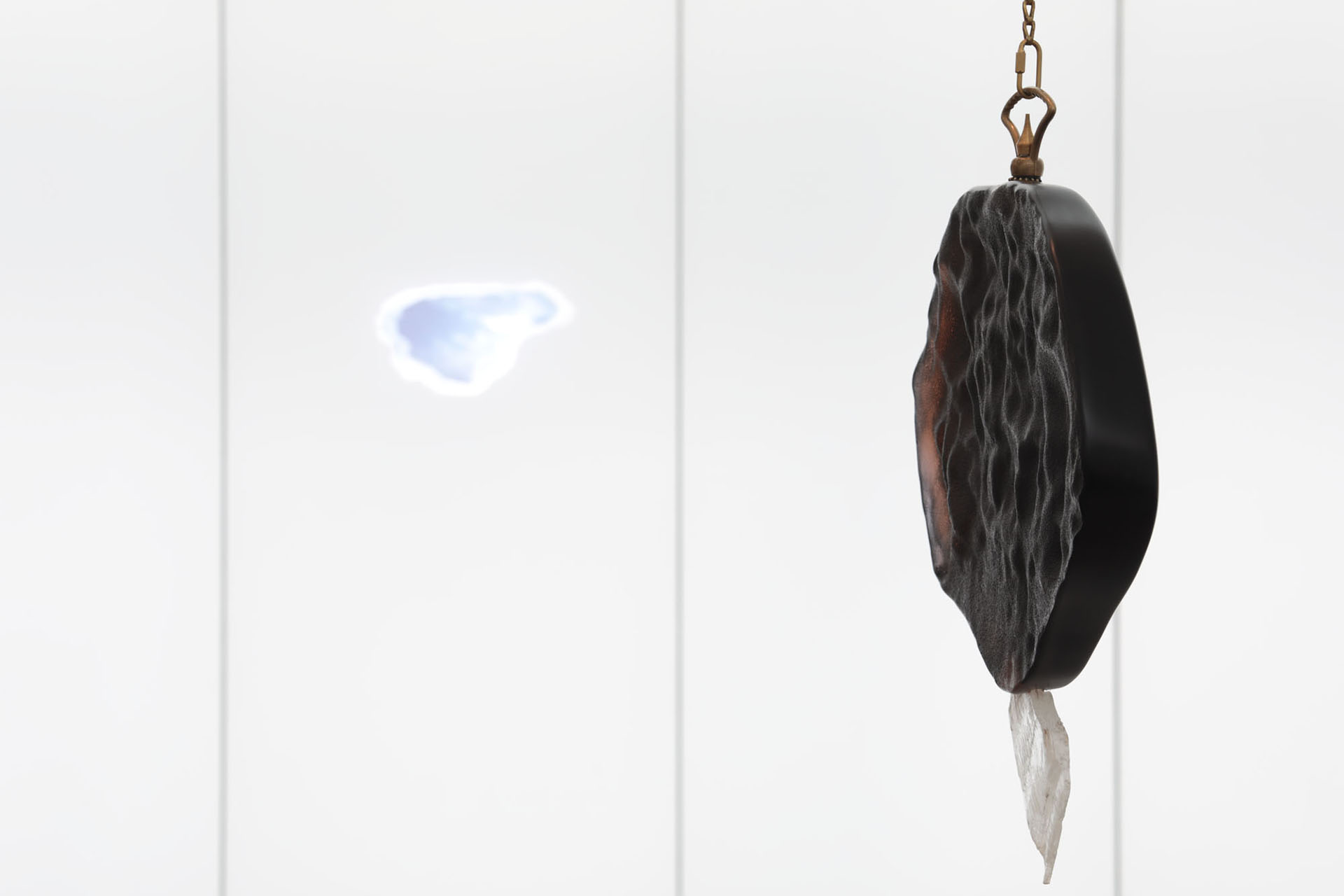 This newly commissioned body of work grew out of the artist’s interest in landscapes that have been profoundly transformed by military and tourism activity. Over repeated visits during full-moon cycles, Cox-Richard conducted rituals that left behind impressions in the sand at White Sands, New Mexico, a place that is home to a national park and an active missile range where the first atomic bomb was tested. They then used 3D scans of those impressions—as well as others from sites with complex human histories—to create molds for the cast glass mirrors.
