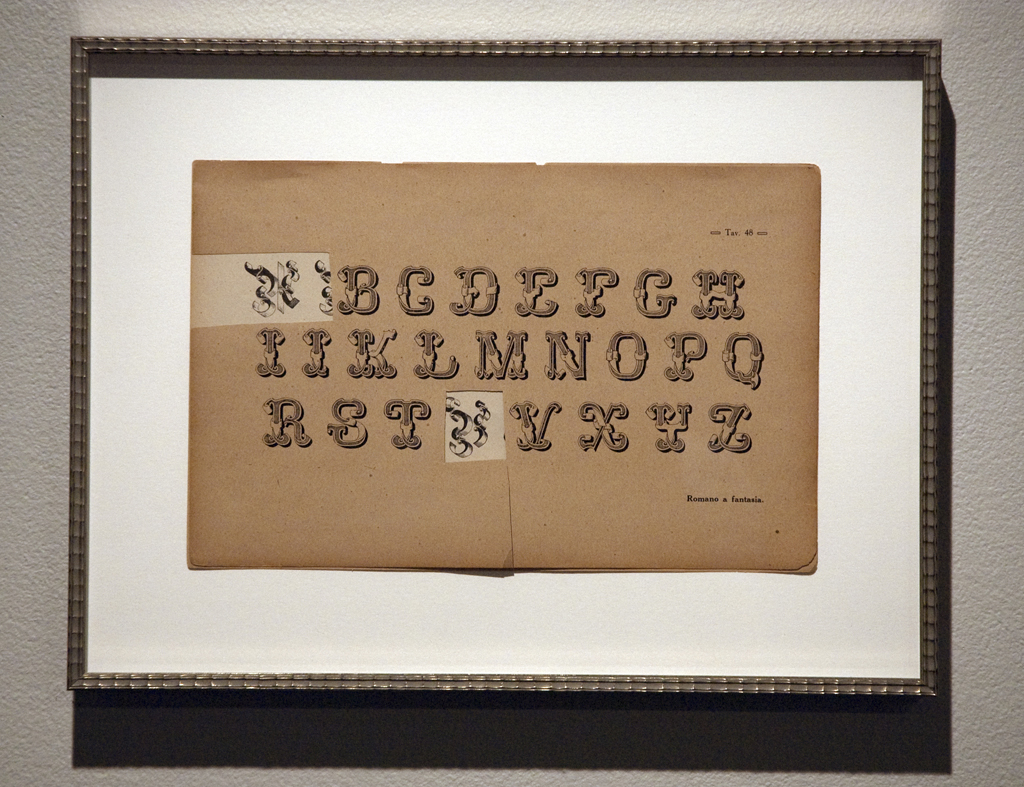 Key, 2010 (found lettering pages from Le Scritture di Tutti i Secoli, 11.5 x 15.25 inches including mat and frame)