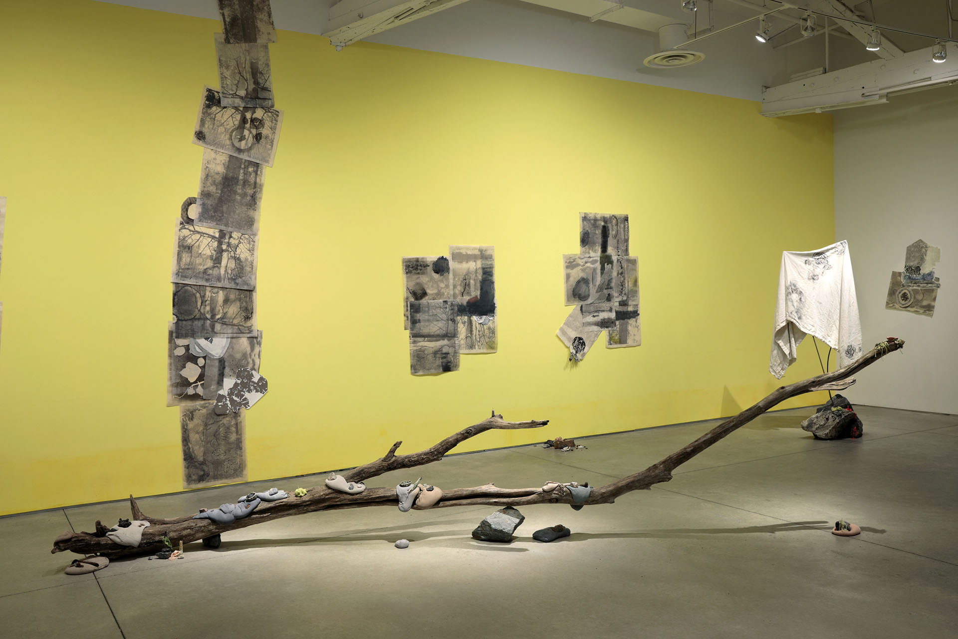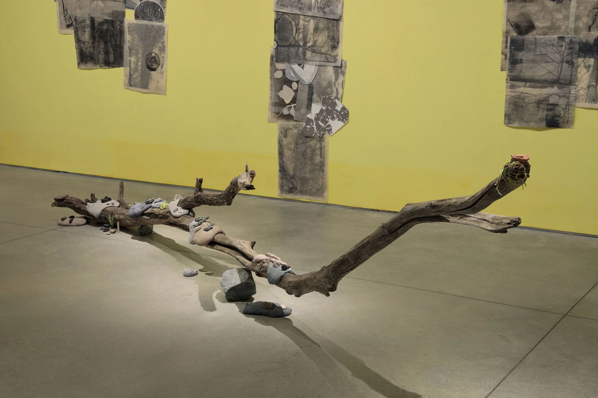 Portal 1, Library of Radical Returns, 2019 (Collaged prints made with rock tumbling slurry, drawings made on site)