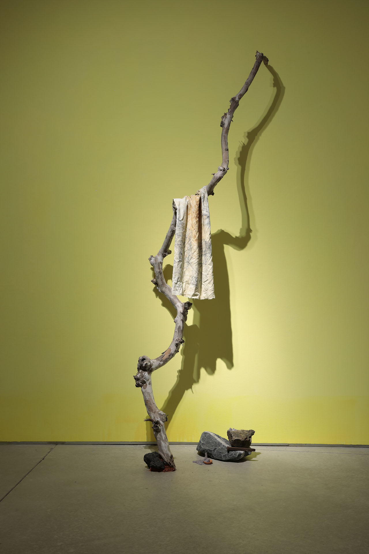 Residuals 4, Library of Radical Returns, 2019 (Fabric, clay, graphite, rebar, magnets, tumbled slag)