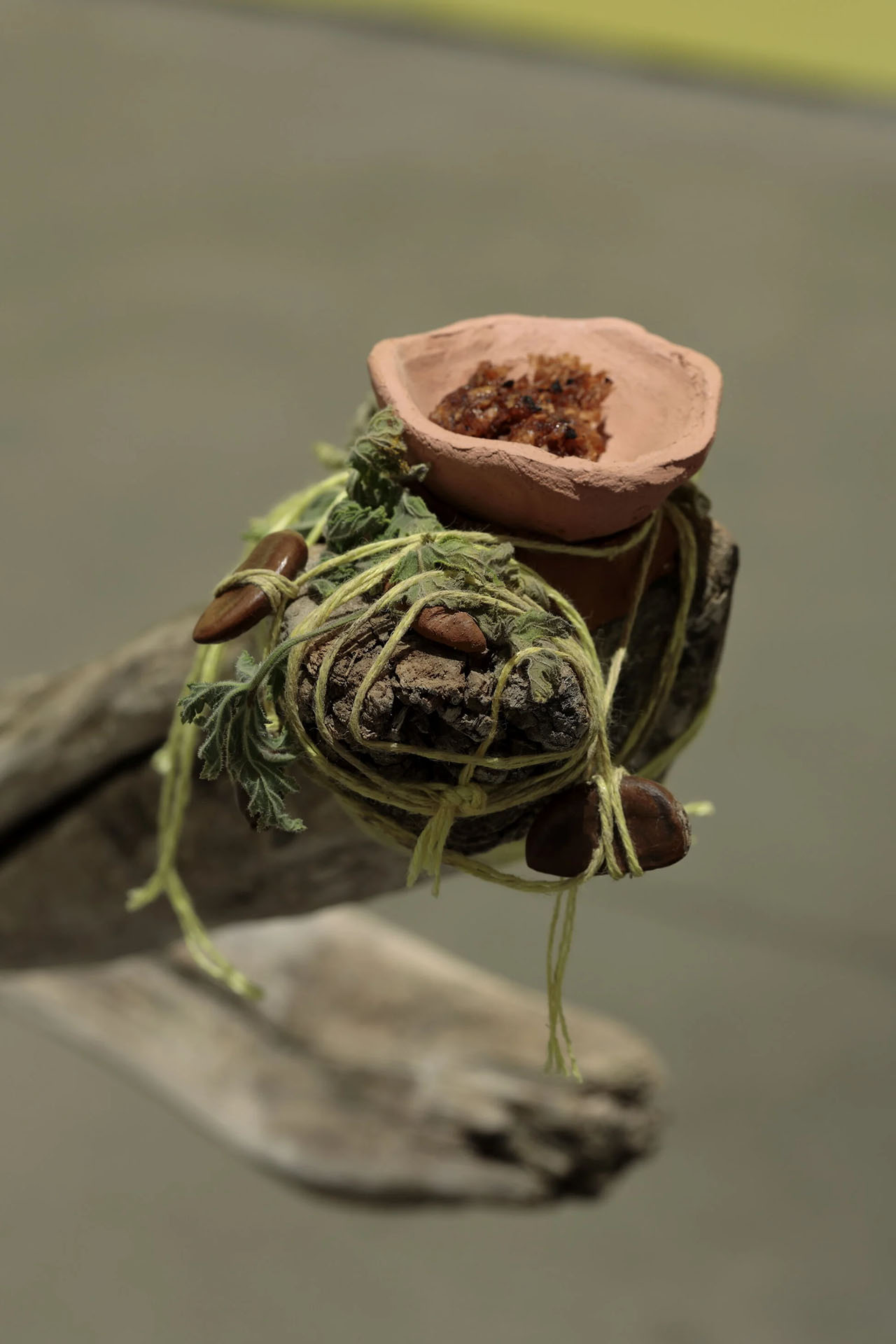 Holding Spaces 1, Library of Radical Returns, 2019 (Driftwood, rocks, concrete, candles, offerings)