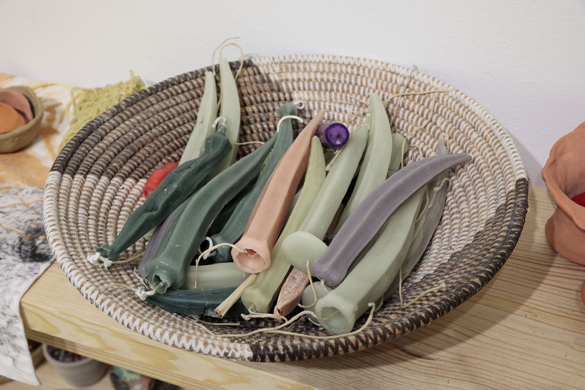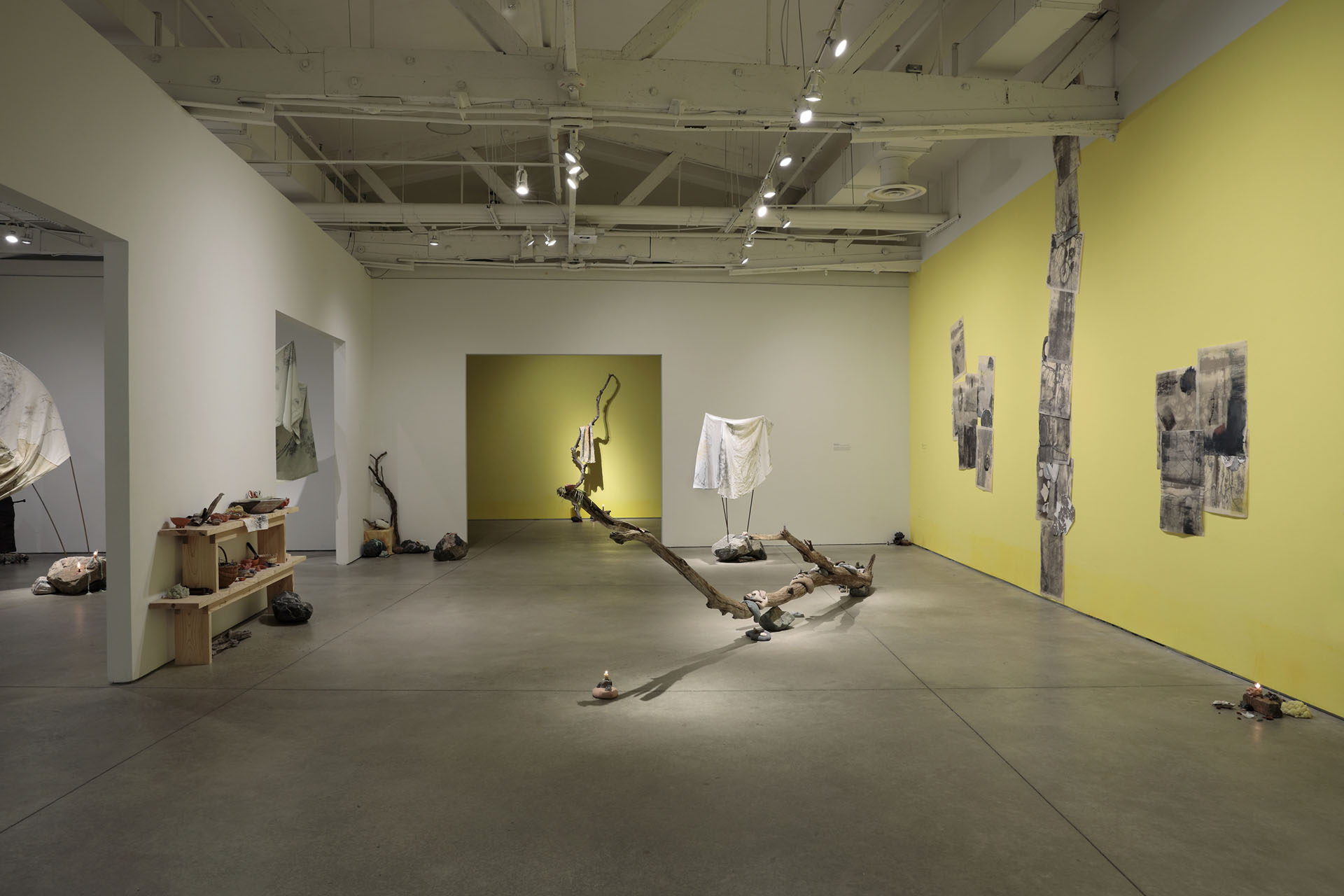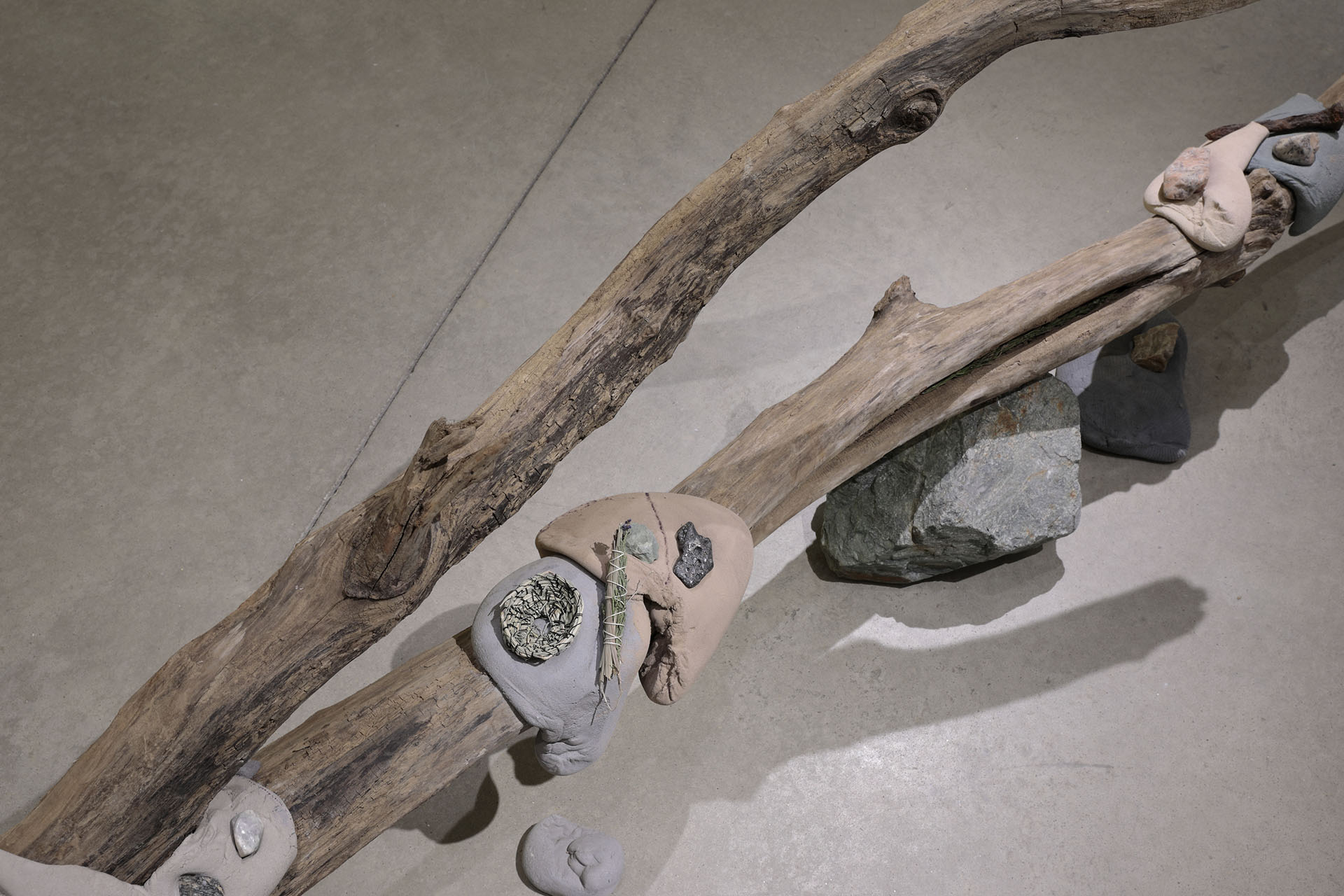 Holding Spaces 2, Library of Radical Returns, 2019 (Driftwood, rocks, concrete, candles, offerings)