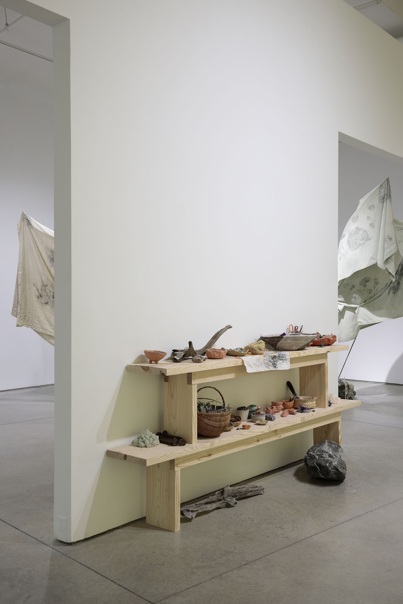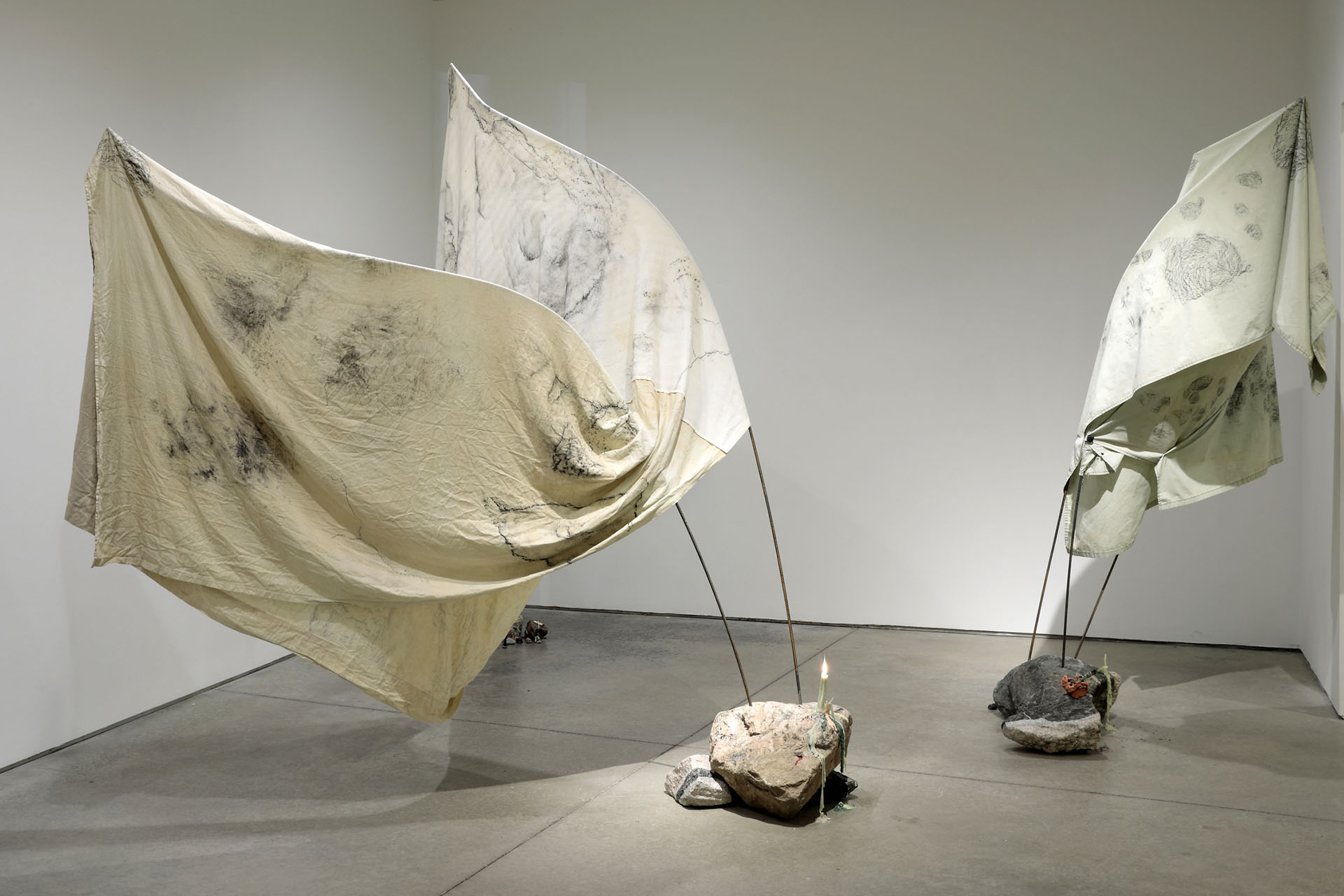 Residuals 2, Library of Radical Returns, 2019 (Fabric, clay, graphite, rebar, magnets, tumbled slag)