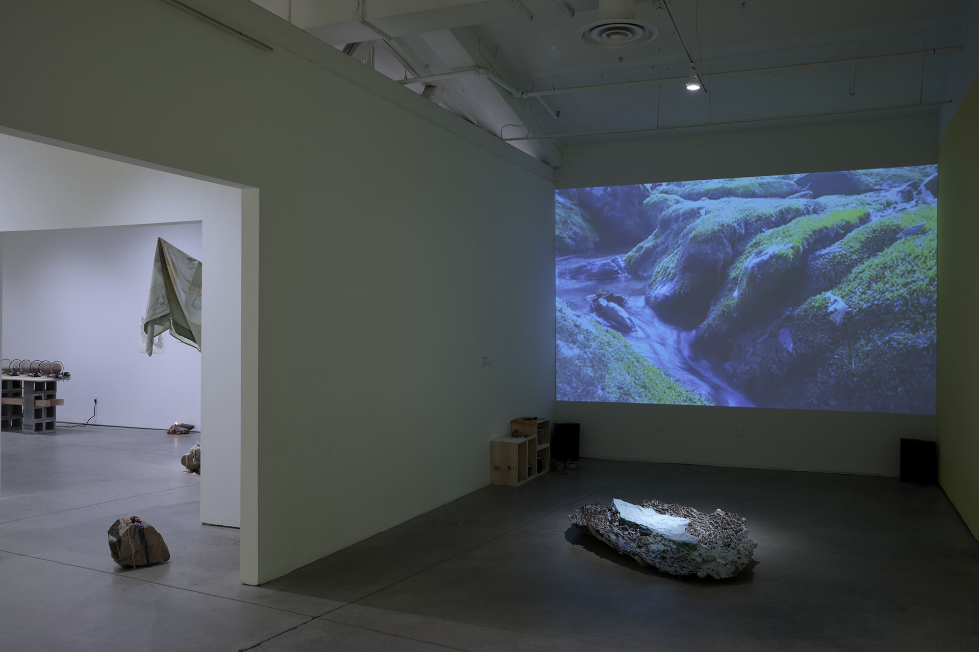 36 x 22 x 9 in.Live Stream of Streams, Library of Radical Returns, 2019 (Projected video aggregate of river moments)