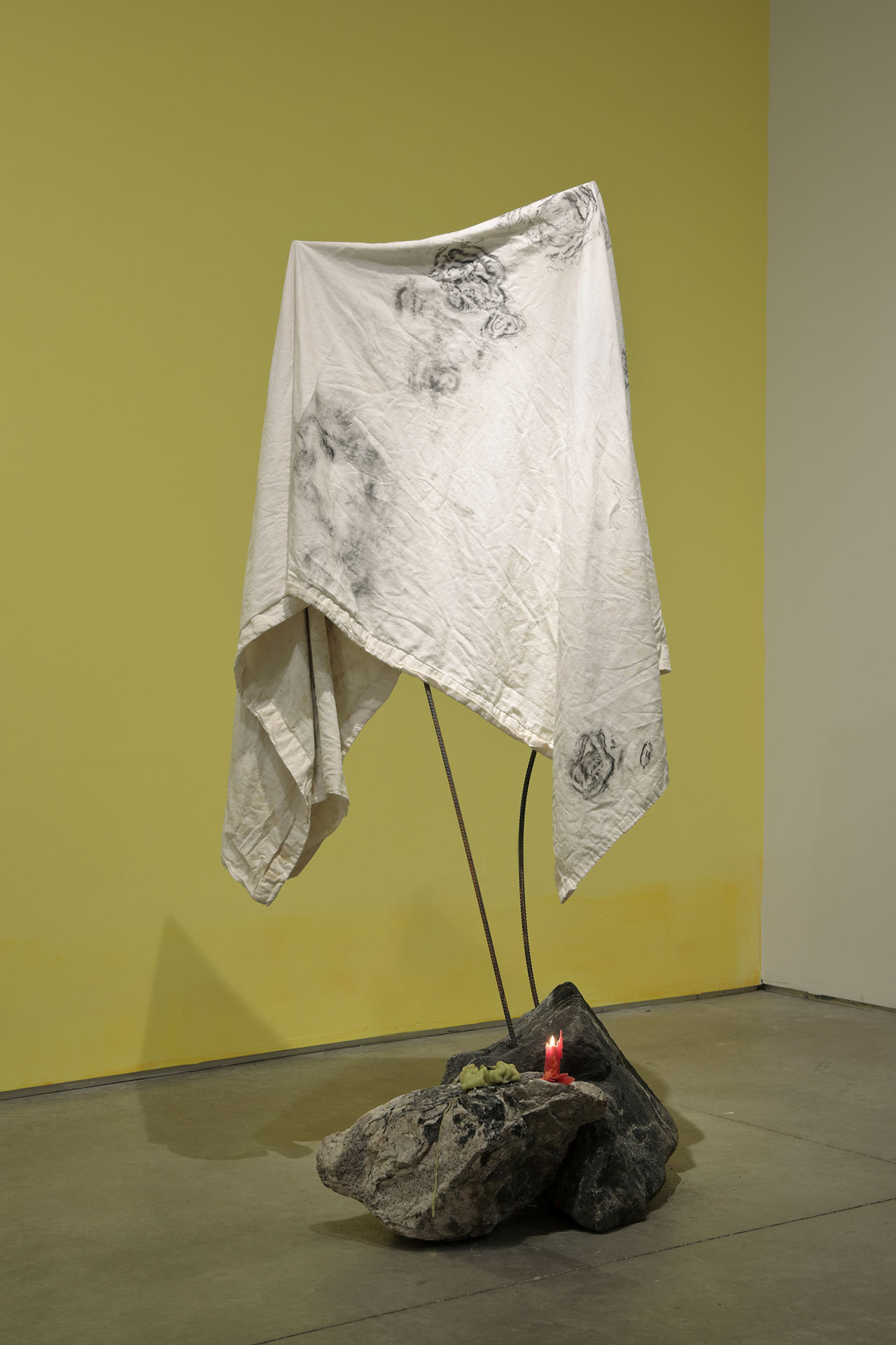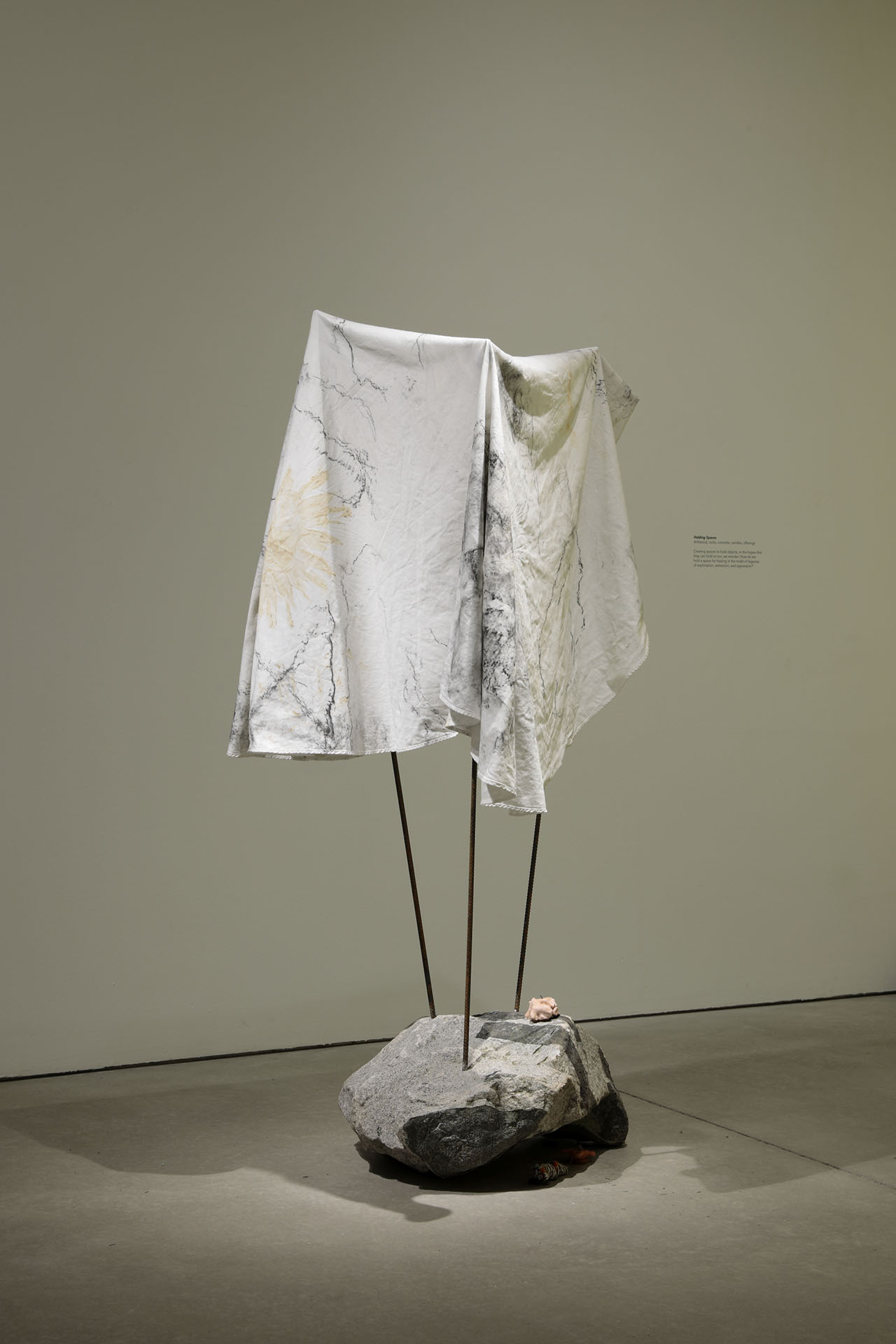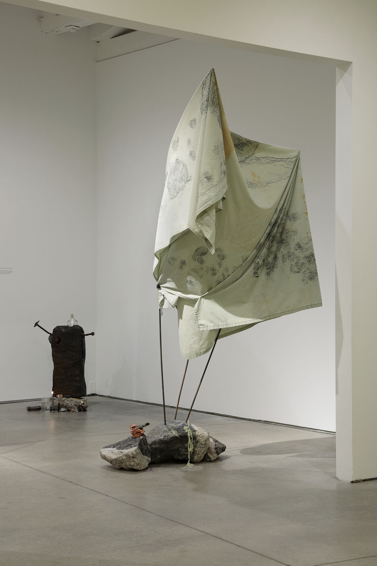 Residuals 1, Library of Radical Returns, 2019 (Fabric, clay, graphite, rebar, magnets, tumbled slag)