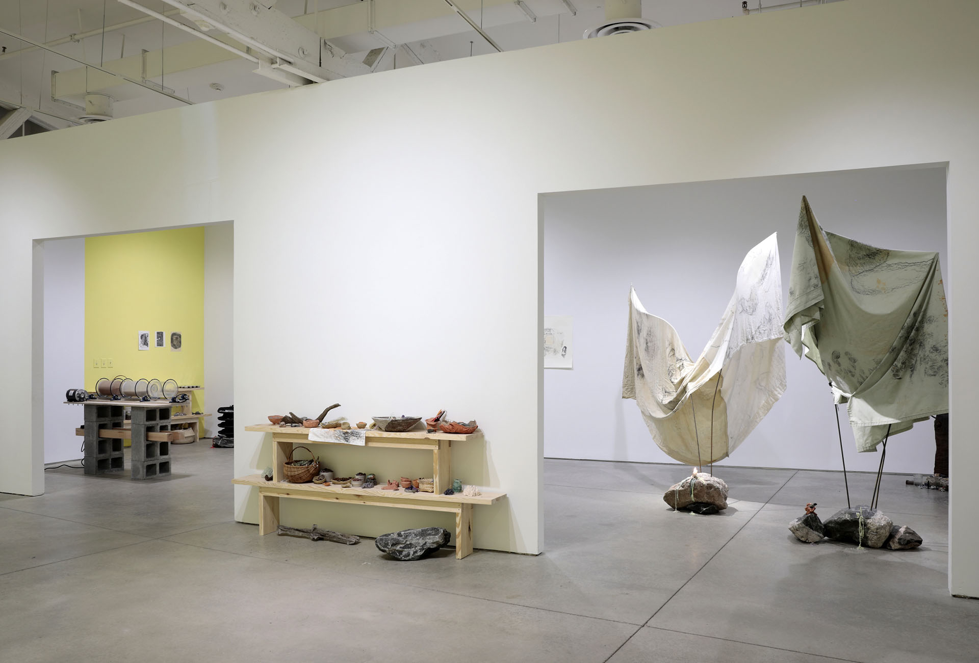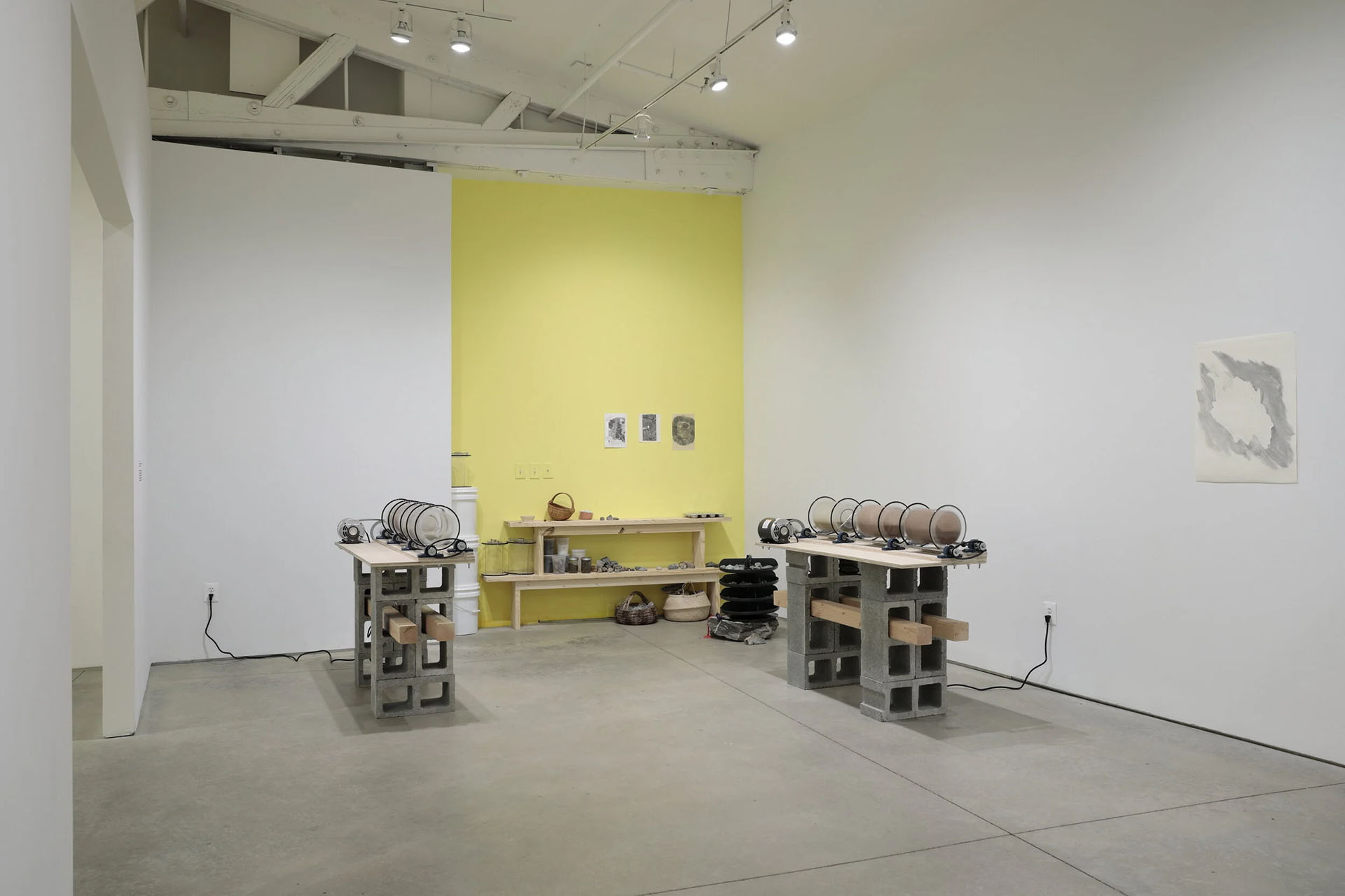 fabric, clay, graphite, rebar, magnets, tumbled slag